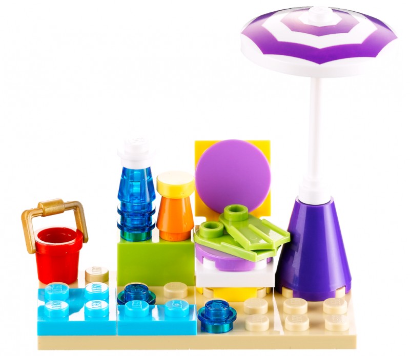 LEGO (ЛЕГО) Пляжный наборВ данный момент этот товар отсутствует в продаже. Возможно, у нас найдется аналогичный или похожий товар здесь. Серия: LEGO Friends С этим пляжным набором отдых на пляже превращается в сказку! Устроившись в уютном шезлонге, можно позагорать, наслаждаясь теплом солнечных лучей. Если станет жарко, стоит переместиться под зонт и выпить бутылочку холодной воды. Здесь же имеется солнцезащитный крем и ведерко для воды для создания песчаных замков. И, конечно, пляжный отдых не обойдется без купания в море — нужно лишь надеть ласты и скорее нырять! Мини-конструктор с пляжным набором состоит из 27 деталей и сочетается с другими наборами LEGO. |