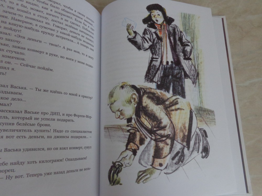 Небольшая повесть в шестикласснике Косте Макарове, материально обеспеченном и уверенном в себе, всегда знающим, как поступить, чтобы быть "на хорошем счету", чтобы обеспечить себе положение в обществе, как учат родители. И вот он сталкивается с совсем другими людьми - бескорыстными, действующими от всего сердца без оглядки. Вернее, не сталкивается, а замечает, что они есть в его окружении. Это история о взаимоотношениях поколений, о проблемах в общении со сверстниками, о поиске себя и немного о войне... В преддверии Дня Победы, думаю, книга будет очень актуальна. Сбежав с контрольной, Костя случайно на чердаке школы находит старый альбом с фотографиями и волей случая становится председателем красных следопытов в поисках людей со снимков. Должность солидная, правильная для репутации, но тут Косте действительно становится интересно узнать о судьбе трёх танкистов... То ли это "волшебная" кружка на него подействовала, то ли незримая магия пожелтевших страниц газет, шуршащих на столе... И невозможно оторваться от этой истории, пока не перелистнёшь последнюю страничку, пока не узнаешь всю правду! Прекрасно подойдёт на возраст 10+ Качество книги отличное! Опечаток, чем нет-нет, да и грешит Речь, я не заметила (или история меня так увлекла?), рисунков немного, но вполне хватает. Рисунки мне очень понравились))), хотя сравнивать мне не с чем, да оно и к лучшему!