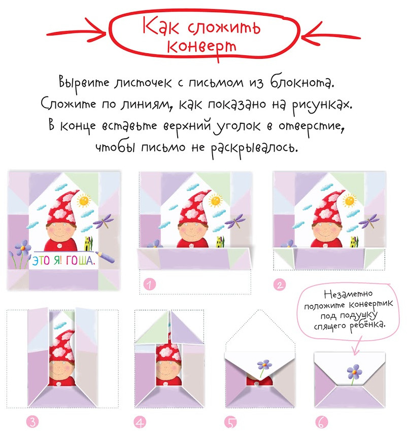 Серия: Письма для тебя В блокноте представлен уникальный метод обучения чтению. Это 30 волшебных писем от гномика Гоши, адресованных ребёнку. Ребёнок читает их сам, без помощи взрослых. Родителям нужно просто каждый вечер незаметно класть готовое письмо под подушку спящего ребёнка. |