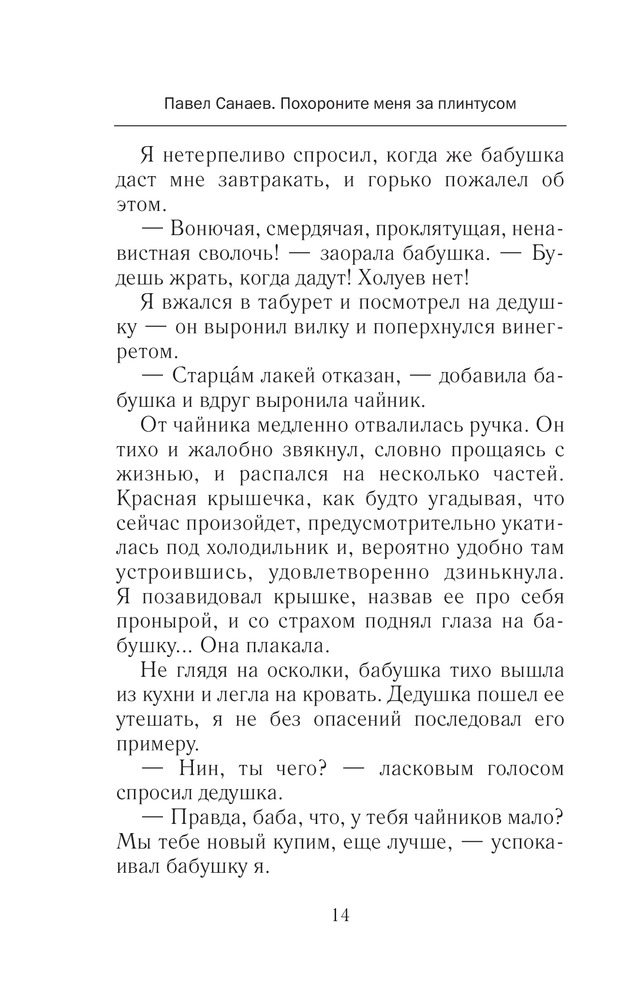 Похороните меня за плинтусомВ данный момент этот товар отсутствует в продаже. Возможно, у нас найдется аналогичный или похожий товар здесь. Книга, номинированная на Букеровскую премию, буквально взорвала отечественный книжный рынок и обрела не просто культовый, но — легендарный статус! |