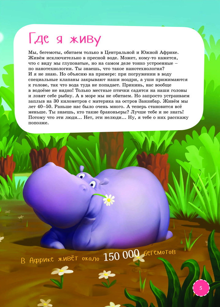 Я бегемотВ данный момент этот товар отсутствует в продаже. Возможно, у нас найдется аналогичный или похожий товар здесь. Серия: Занимательная зоология для детей Громадные бегемоты считаются третьими по величине наземными млекопитающими нашей планеты (после слонов и белых носорогов). Из этой книжки ты узнаешь, легко ли быть таким большим и тяжёлым, правда ли, что бегемот много ест, где он спит, и как мамы-бегемотихи заботятся о своих малышах. Скорее открывай книгу, наш добрый бегемот хочет с тобой познакомиться! |