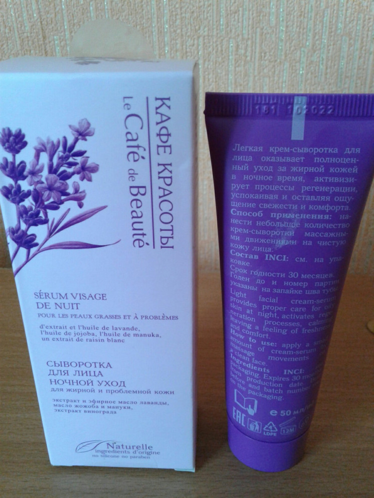 Заказ отлично упакован, спасибо Флип.кз. Сыворотка роскошная! Столько экстрактов и полезных ингредиентов в составе. К сожалению, у нас в магазинах её не встречала. Зато теперь знаю, где найти) У меня кожа смешанная, склонная к высыпаниям. Не каждое средство подойдёт. Это подошло отлично. Никакой аллергии сыворотка не вызвала. Цвет белый, консистенция жидкая, имеет ярко выраженный аромат эфирного масла лаванды, очень натуральный. Впитывается и матирует кожу прекрасно. Экономична, много не требуется для 1 нанесения. Под пудрой(использую Pupa ) не скатывается. Довольна покупкой!