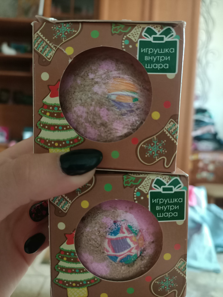Заказала ещё 2.Бомбочки шипят, отлично красят воду. Сюрприз был.