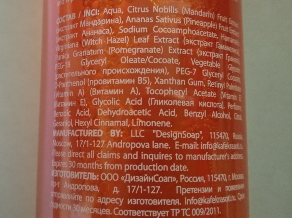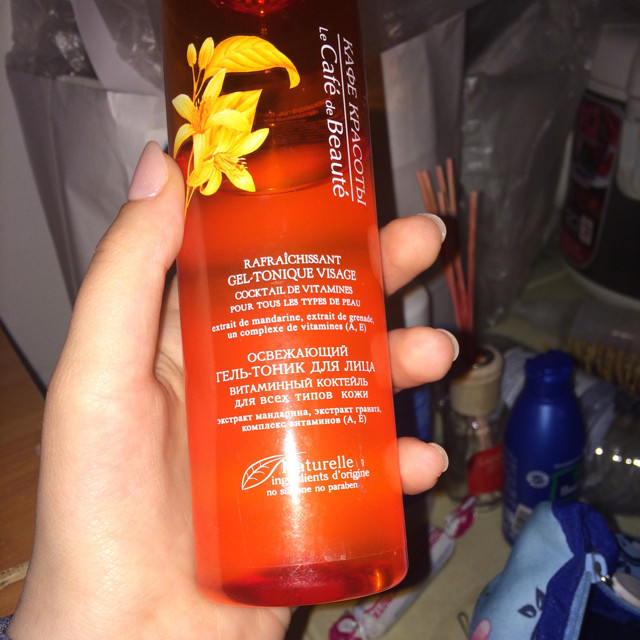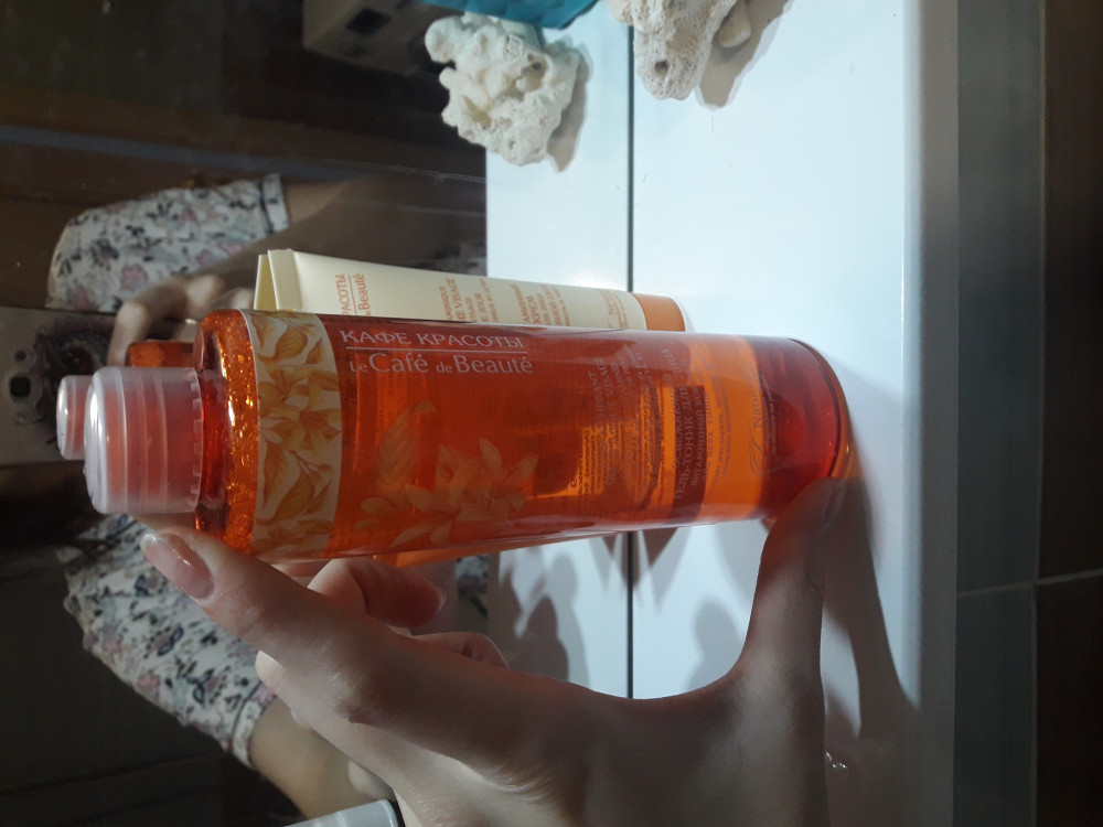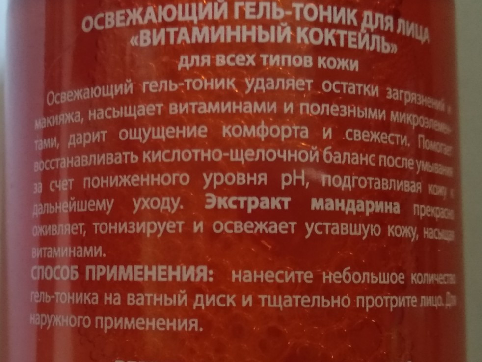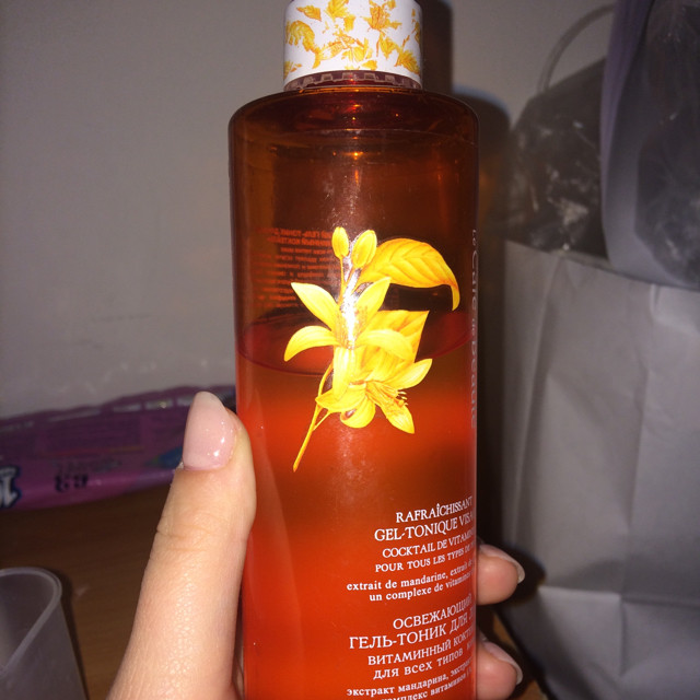 Купила гель-тоник с мандарином. упаковка отличается от картинки, бутылочка круглая, запах не резкий, не навязчивый, при нанесении кажется мыльным, но Хорошо впитывается, не сушит Кожу и не оставляет чувство липкости, хороший.