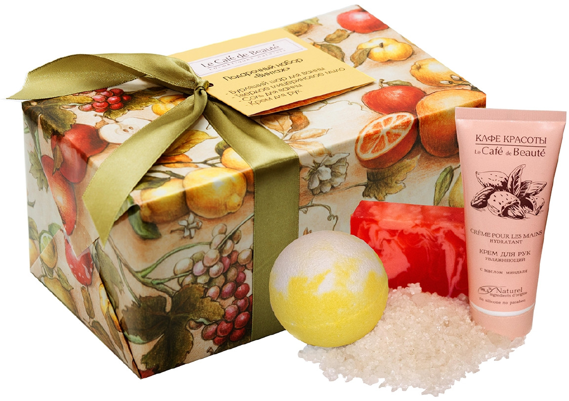Кафе Красоты Подарочный набор «Винтаж»В данный момент этот товар отсутствует в продаже. Возможно, у нас найдется аналогичный или похожий товар здесь. Подарочный набор «Винтаж» станет приятным и полезным презентом, который окажет необходимый уход за кожей и будет радовать неповторимыми ароматами. |