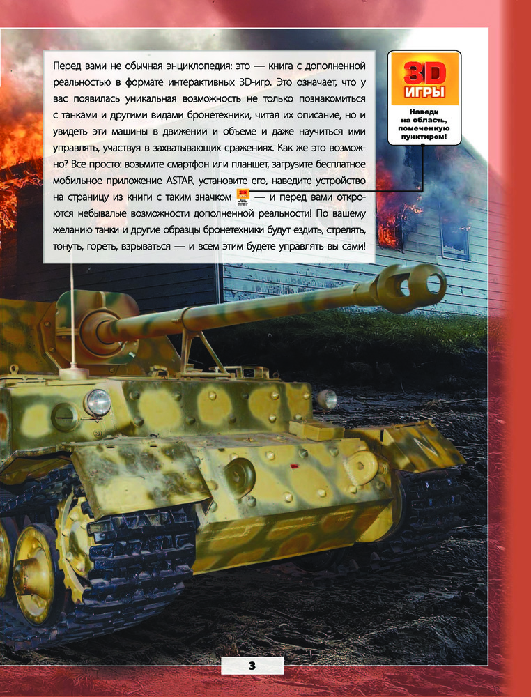 Все о танках и бронетехникеБорис Борисович Проказов, Вячеслав Владимирович Ликсо В данный момент этот товар отсутствует в продаже. Возможно, у нас найдется аналогичный или похожий товар здесь. Серия: Большая 3D-энциклопедия Современный танк — мощное и грозное оружие. Познакомиться с его первыми опытными образцами, увидеть, как развивался тот или иной его тип в разных странах мира, оценить боевые качества орудий и надежность брони вы сможете, открыв страницы нашей удивительной энциклопедии с дополненной реальностью в формате интерактивных 3D-игр. Теперь у вас появилась уникальная возможность не только познакомиться с танками и бронетехникой, читая их описание и рассматривая иллюстрации, но и увидеть их образцы во всем блеске их грандиозных возможностей: в объеме и движении. И даже пострелять, участвуя в грандиозных танковых сражениях. Танки будут ездить, стрелять, тонуть, гореть, взрываться — и всем этим будете командовать вы сами. Вам необходимы лишь наша 3D-энциклопедия, смартфон или планшет с установленным бесплатным мобильным приложением ASTAR — и ваше желание ощутить себя командиром танкового расчета обязательно сбудется. |
