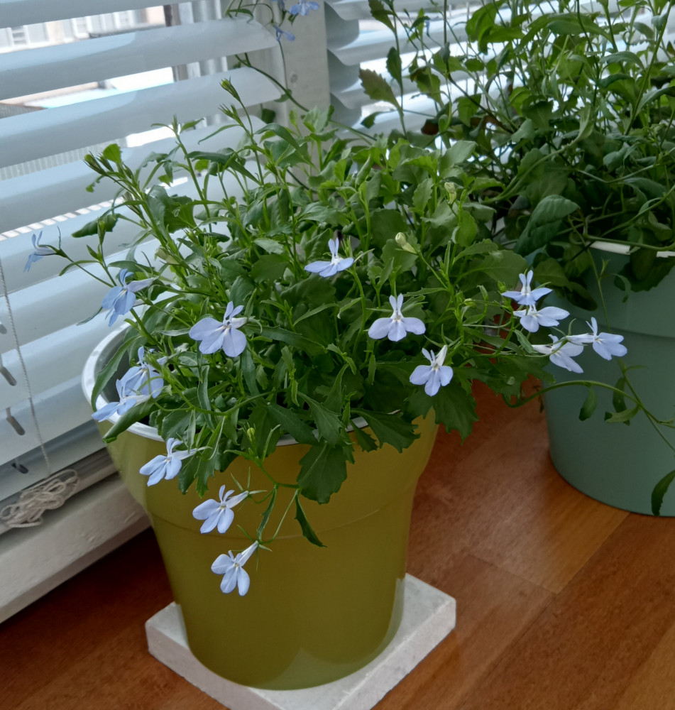 Сеяла лобелию впервые, не знала, что семена такие мелкие, посеяла, как получилось. Всё взошло, потом рассадила в стаканчики, хотя, наверное, надо было как-то по-другому, получилось пока вот так, наверное, ещё разрастутся. Цветы в жизни - ярко-синие, мне нравятся.