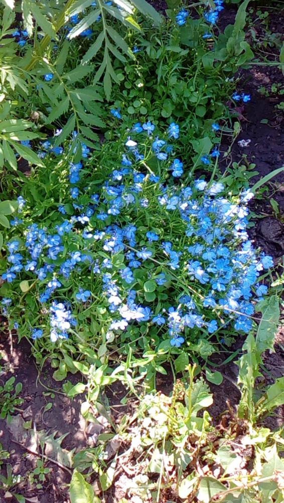 Взошли все дружно, цвести начали в конце мая, цветочки как на картинке нежно голубого цвета и из очень много не видно зелени практически.