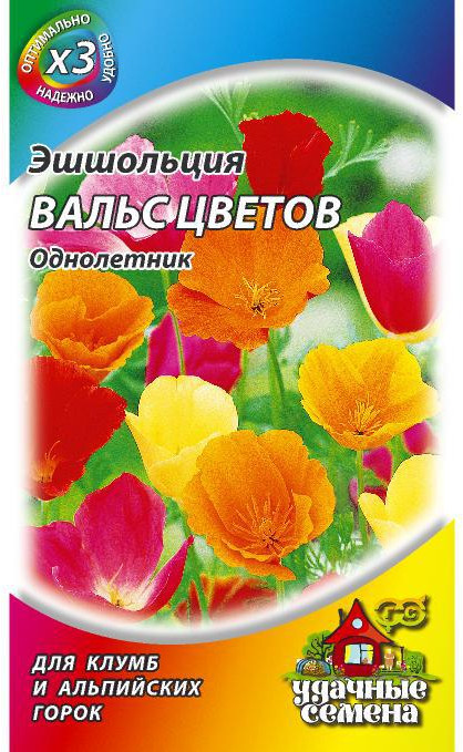Гавриш Семена. Эшшольция «Вальс цветов», смесь 0,1 г-25% +2 обильное цветение длительное цветение низкая всхожесть однообразие цвета