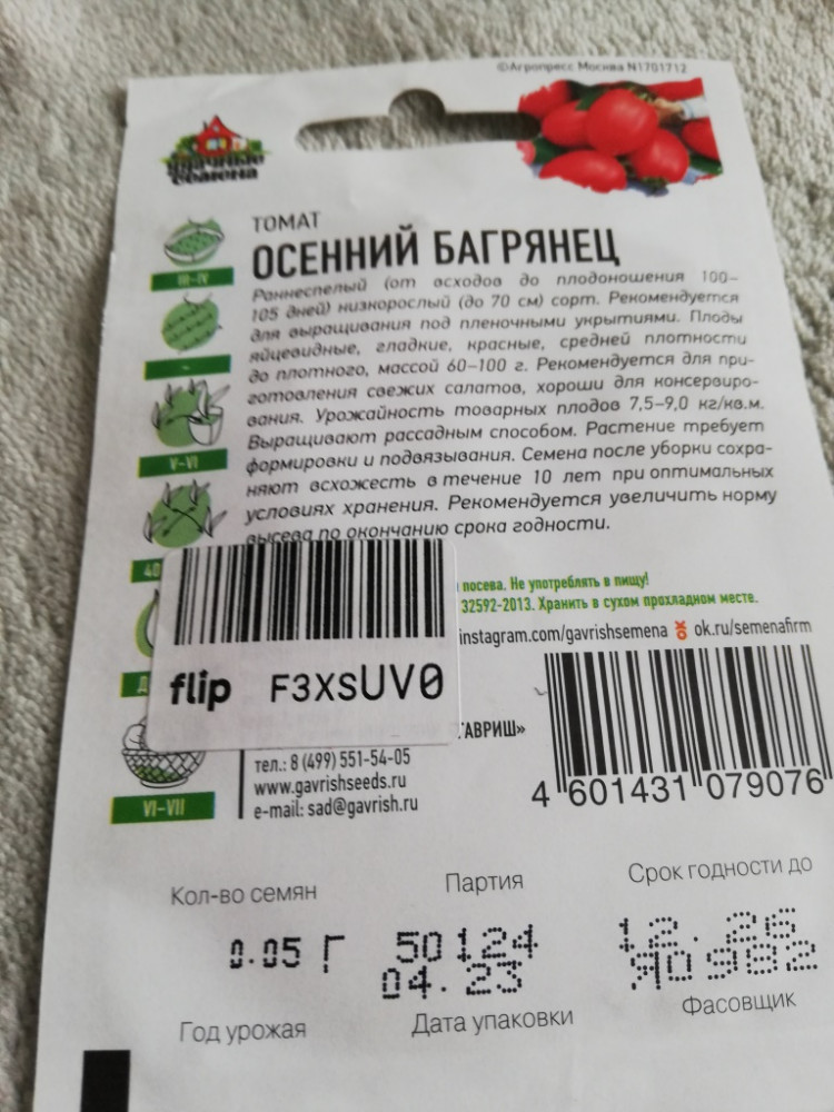 Гавриш Семена. Томат «Осенний багрянец»+3 всхожесть качество семян вкус урожайность