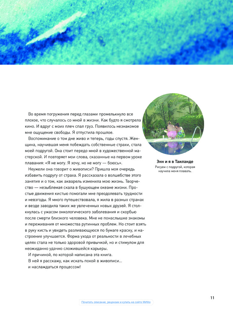Великолепная книга! Конечно, она не адресована профессиональным художникам и вряд ли что-то прибавит к их мастерству! Но тому, кто стремится к творческому развитию, самосовершенствованию, обретению внутренней гармонии и душевного равновесия, эта книга станет прекрасным помощником! Прекрасно изданная, яркие иллюстрации, понятные советы и полезные мастер-классы! Книга с душой и добрым и радостным отношением к жизни, которым заряжает! Спасибо автору и Флипу!!!)))