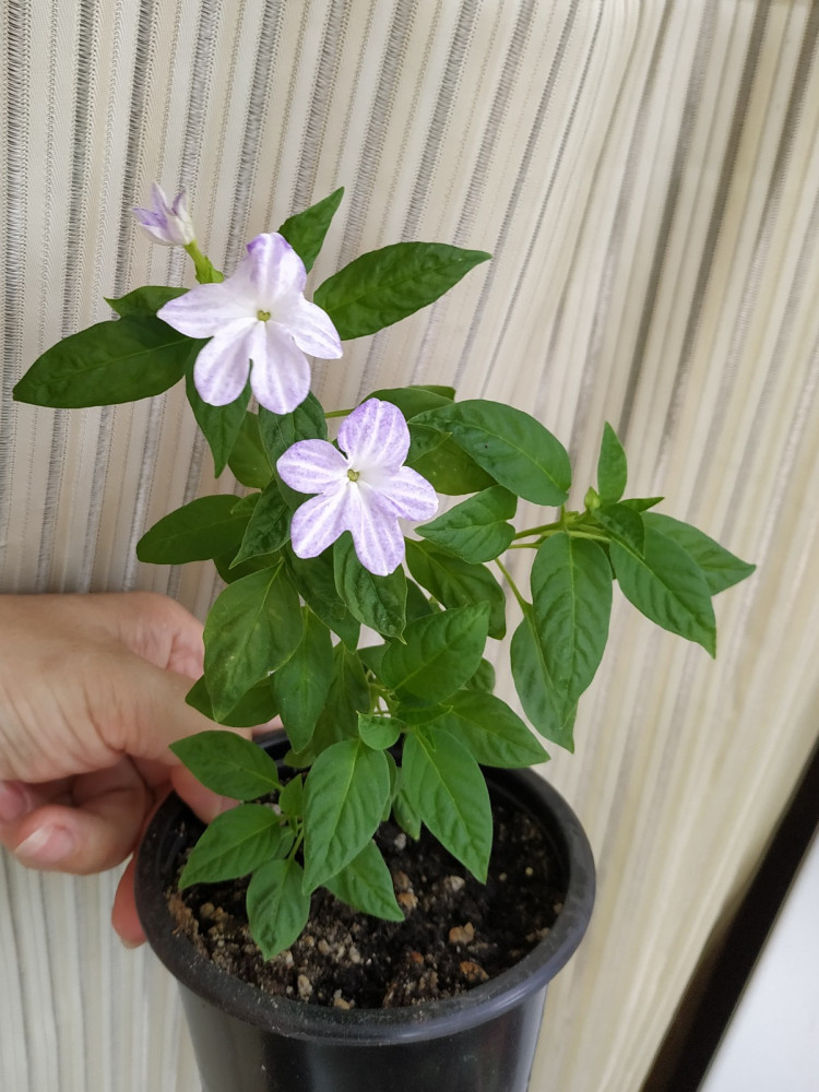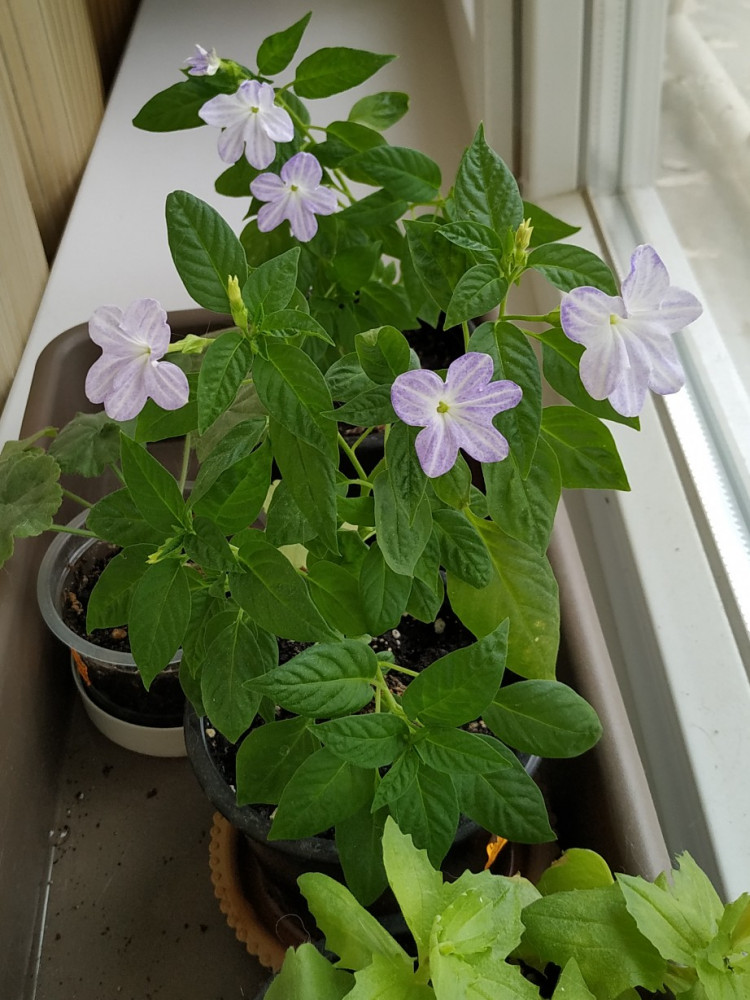 Из 3 семян взошло 2. Зацвели неделю назад, но обе не белые, а бледно фиолетовые. Растут дома на окне. Буду осенью пробовать черенковать.