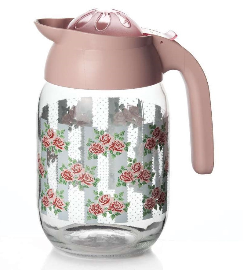 Кувшинчик симпатичный, но по моему на литр, а просто литровая банка с крышкой. Но для напитков хорош.
