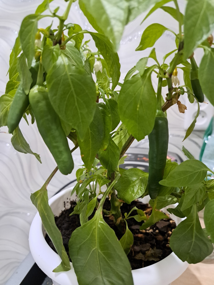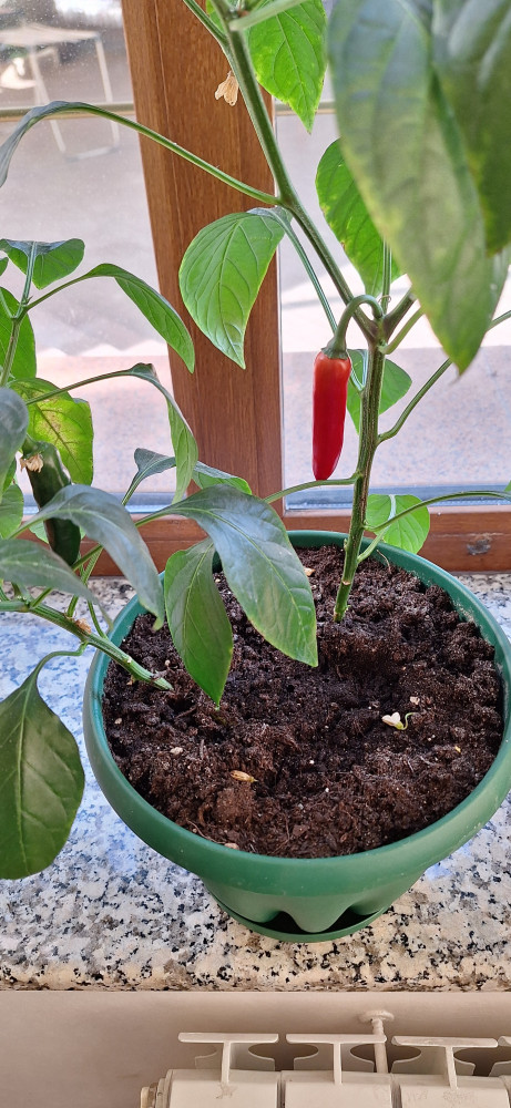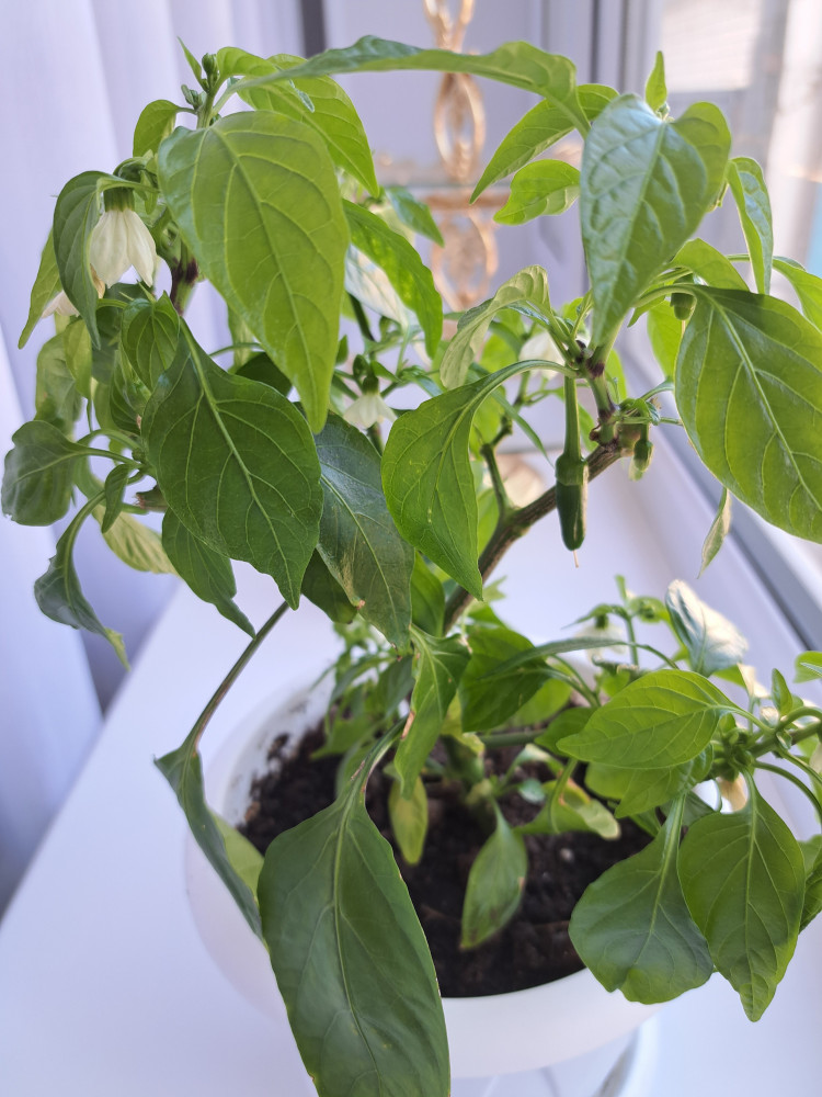 взошёл 1, долго не цвел. сейчас появились перчики, но обычные продолговатые, зелёные,