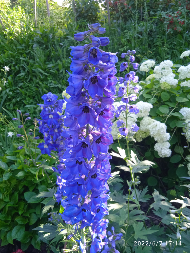 Из пачки удалось вырастить три дельфиниума, посадка год назад, повторное цветение.