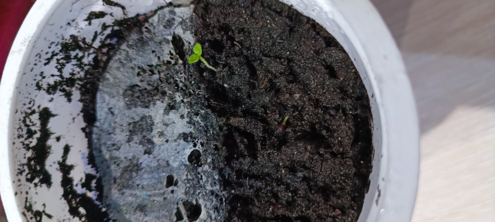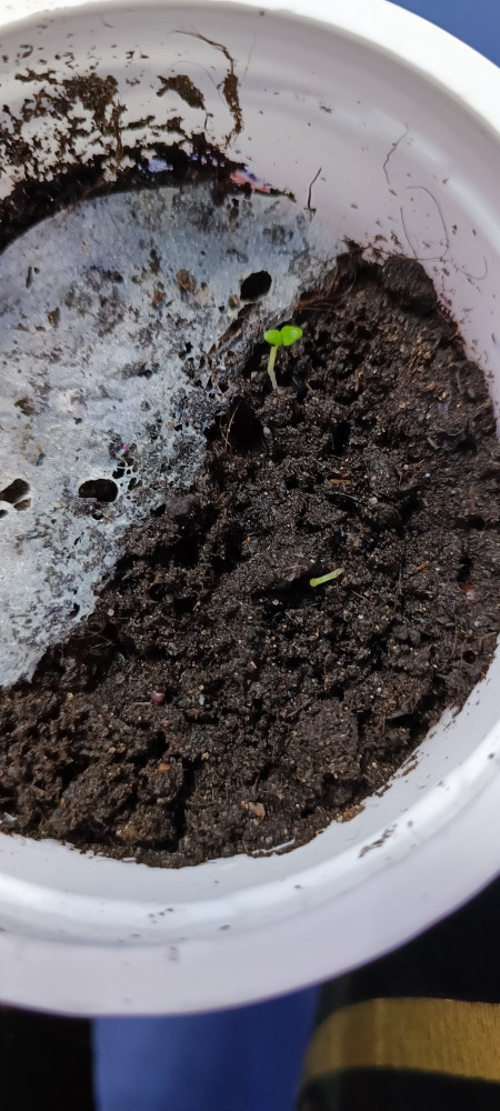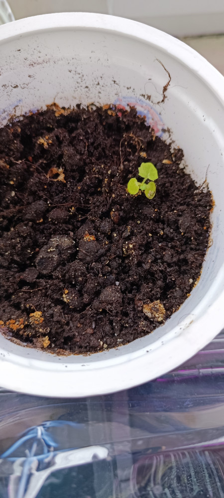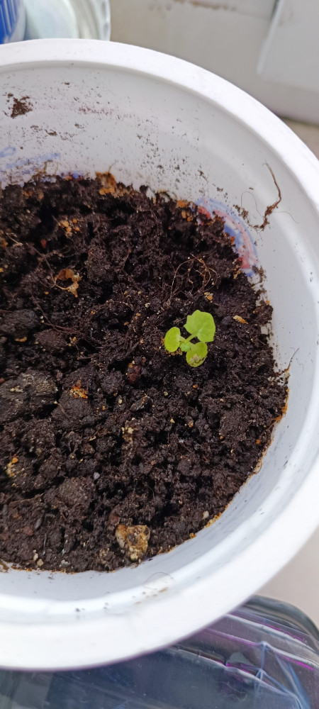 Из трёх проклюнулось 2 семечка. Перед высадкой семена держала в холодильнике в пачке, не распечатывала. Посмотрим как дальше будут развиваться.