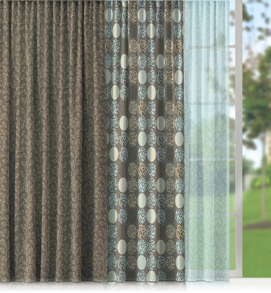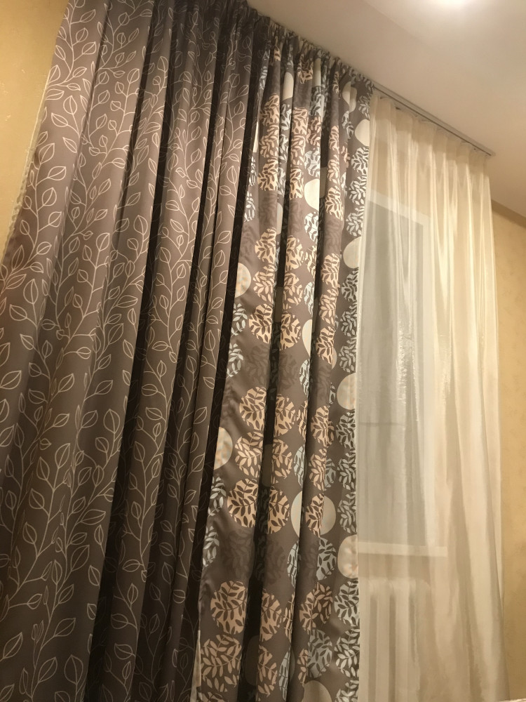 • гармонично подобранное сочетание для разных тканей — красивое и функциональное решение. Можно регулировать освещенность комнаты за счет штор разной светопроницаемости. Рисунок компаньона и основной шторы идеально дополняют друг друга, не нужно искать и подбирать;