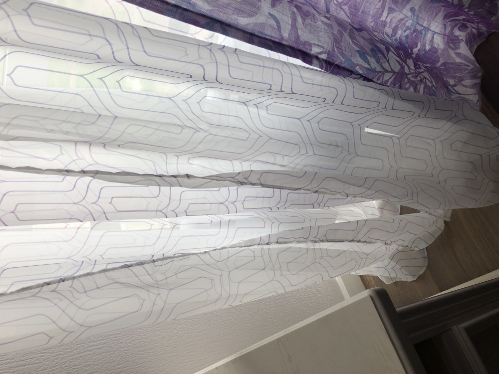 Материал отличный, струящийся и легкий. Но всего 3 звезды за пошив. Боковые швы стянули ткань, и с боков тюль приподнята где то на 5 см и скручивается. Висит как тряпка. Не рекомендую. Взяла блэкаут и габардин из этой серии - вот они понравились.