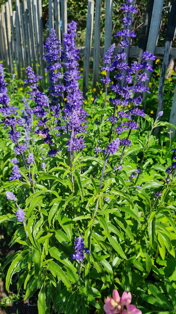 У меня на участке растет "сальвия" многолетняя. Цветки светло-бордовые. Цветёт в начале лета. Потом я её обрезаю, когда соцветия отцвели. Осенью она опять зацветает и стоит до самых морозов.