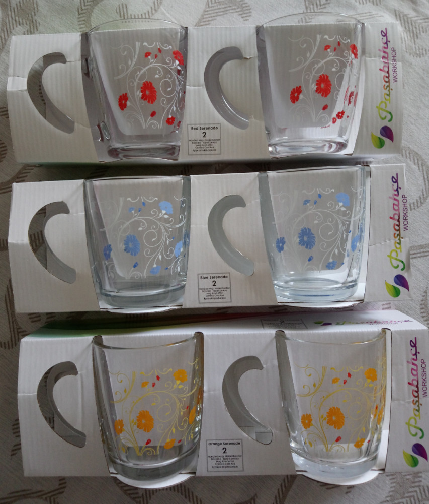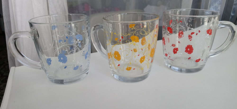 Кружки красивые! Стекло толстое, прочное. Цветочки очень нежные, немного светлее, чем на фото. Спасибо!