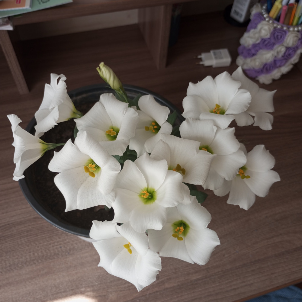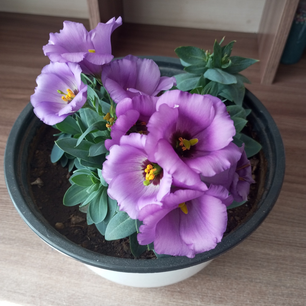 Не везёт мне с эустомой. Всходы дружные, но когда рассада подрастает на 1,5-2 см - замирает. Второй раз пытаюсь вырастить эту красавицу. Из этой пачки зацвела только одна фиолетовая эустомка.