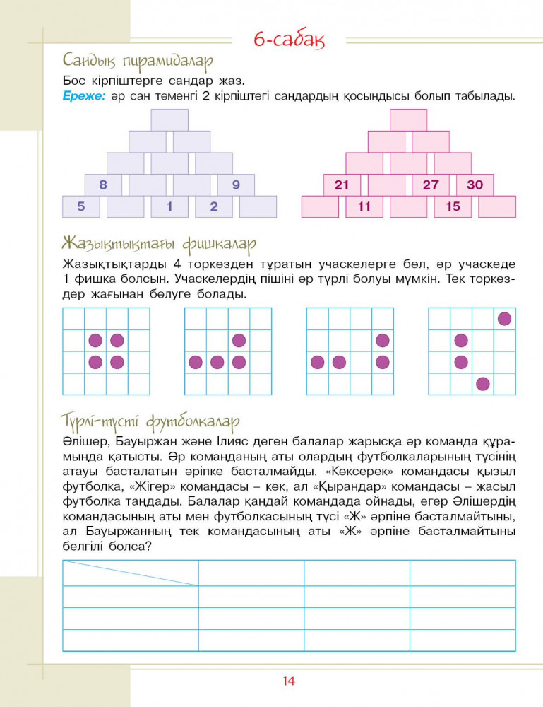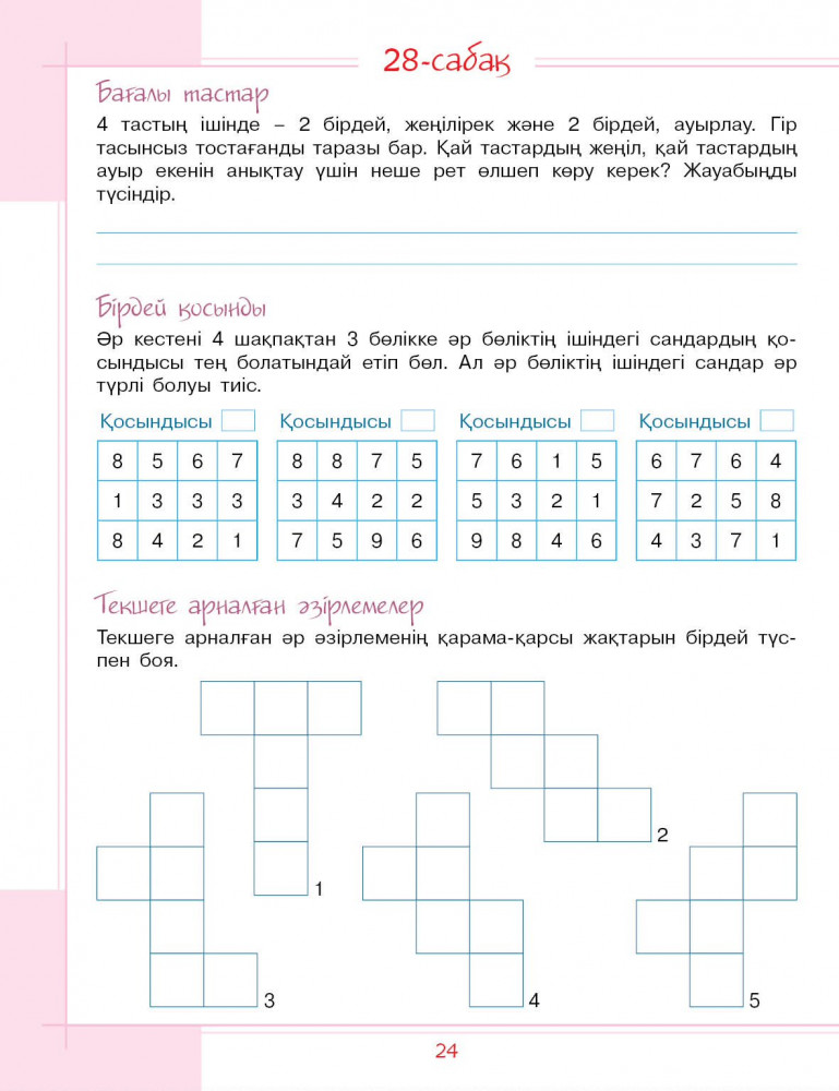 💳 Оплатить за товар можно при получении 🇰🇿 Есть бесплатная доставка по Казахстану от 1 дня 🎁 Копите бонусы с каждой покупки Серия: Рабочие тетради 3 класс «8&8» Бұл оқу құралы «Бастауыш сыныптардағы дамытушы логика» курсы бойынша есептер мен жаттығулар жинағы болып келеді. Оқыту толық мәнді болу үшін осы курстың құралдарының барлық серияларын қолдану ұсынылады. Сабақтардың мақсаты талдау, синтез, салыстыру, жіктеу, ұқсастығын табу, себеп-салдарлық байланысты анықтау, қорытындылау сияқты логикалық ойлау тәсілдерін үйрету, сонымен қатар әр түрлі бас қатырғыштарды шешуге қызығушылық қалыптастыру болып табылады. |