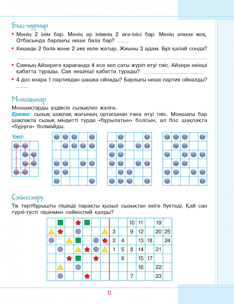 💳 Оплатить за товар можно при получении 🇰🇿 Есть бесплатная доставка по Казахстану от 1 дня 🎁 Копите бонусы с каждой покупки Серия: Рабочие тетради 4 класс «8&8» Бұл оқу құралы «Бастауыш сыныптардағы дамытушы логика» курсы бойынша есептер мен жаттығулар жинағы болып келеді. Оқыту толық мәнді болуы үшін осы курстың бүкіл топтамасын пайдалануға кеңес беріледі. Сабақтардың мақсаты талдау, синтез, салыстыру, жіктеу, ұқсастығын табу, себеп-салдарлық байланысты анықтау, қорытындылау сияқты логикалық ойлау тәсілдерін үйрету, сонымен қатар әр түрлі басқатырғыштарды шешуге қызығушылық қалыптастыру болып табылады. |