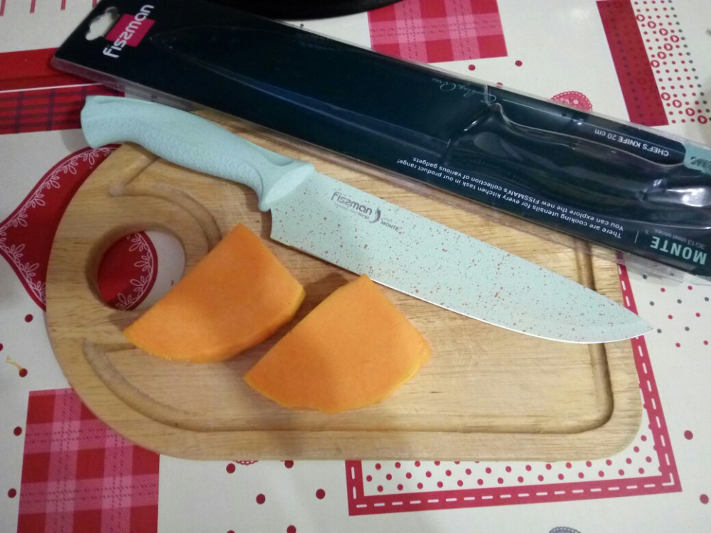 Fissman я уважаю, очень много кухонной утвари от них и я с удовольствием пользуюсь. но к этому ножу это не относится. не сказать, что он совсем плох и качество хорошее, но быстро затупляется, мясо резать им тяжело. рука к нему не тянется, в основном лежит без дела.