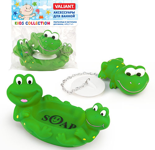 Valiant Мыльница и заглушка для ванны «Лягушата»В данный момент этот товар отсутствует в продаже. Возможно, у нас найдется аналогичный или похожий товар здесь. Серия: Kids Мыльница и заглушка для ванны составят идеальную пару для купания Вашему малышу. |