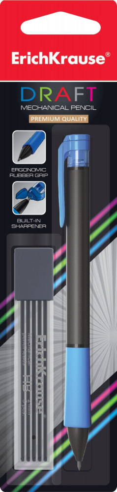 Erich Krause Карандаш механический «DRAFT» в наборе с грифелями (2 мм.)В данный момент этот товар отсутствует в продаже. Возможно, у нас найдется аналогичный или похожий товар здесь. Механический карандаш эргономичной треугольной формы с убирающейся цангой и удобной профилированной грип-зоной из резины. |