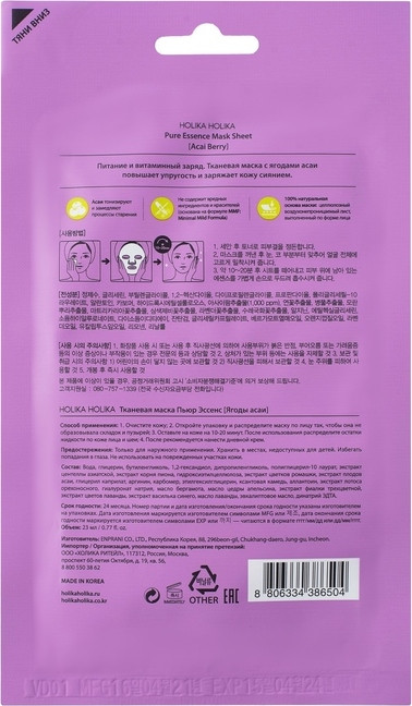 Holika Holika Маска для лица тканевая «Pure Essence» с ягодами ассаи