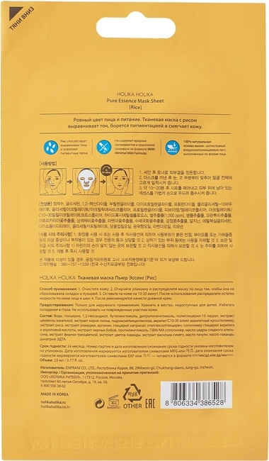 Holika Holika Маска для лица тканевая «Pure Essence» с экстрактом риса