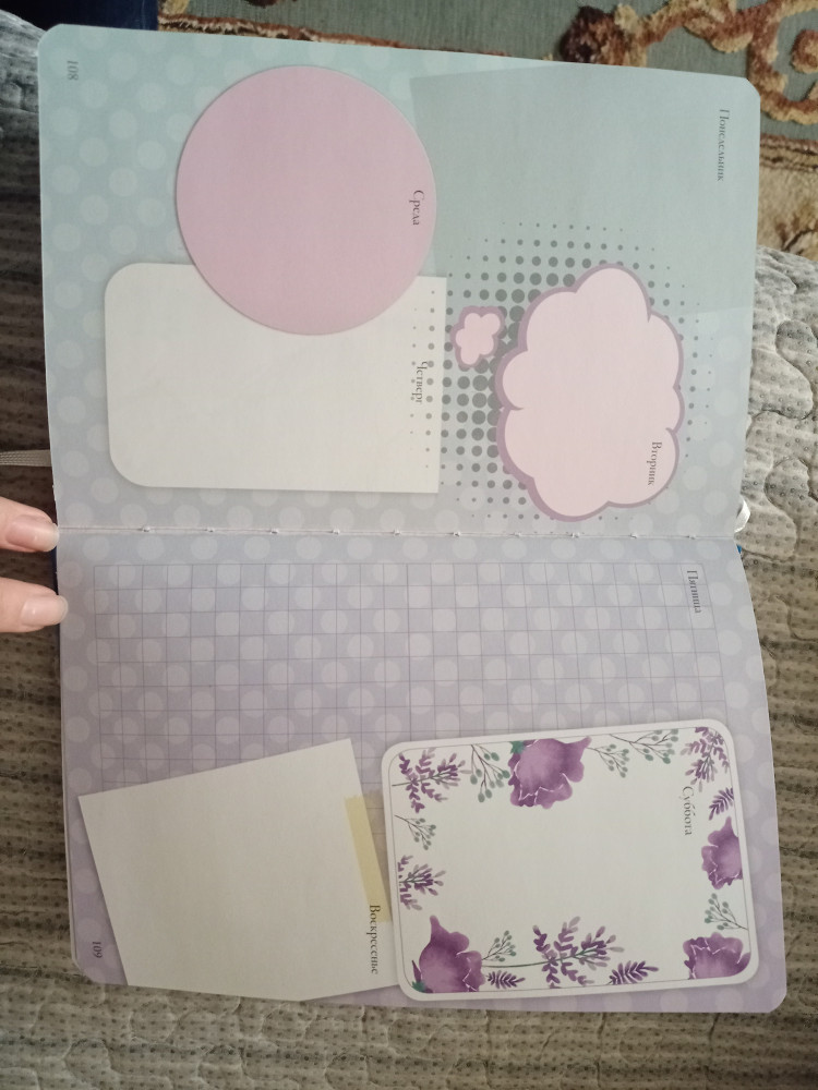 Я искала что то не похоже на обычный ежедневник. Искала долго, позже рискнула и заказала на сайте. Честно, ждала разочарования, так как в описании практически нет фото внутренних страниц, а хотелось что то необычного, креативного. Я нашла то что искала. И надеюсь мой отзыв будет полезный другим. Оставлю несколько фото страничек, чтоб было видно, что в нем🥰