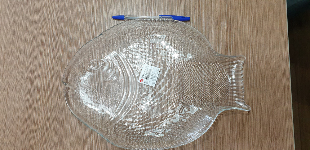 Очень хорошее блюдо. Углубленное. Большое, почти круглое. Внутри поверхность гладкая, а снаружи рисунок, который просвечивает. Очень удобно будет подать рыбные котлеты или жареную рыбу. Очень жаль, что идет без упаковки. Спасибо работникам флипа - завернули на совесть. Приобретением довольна.