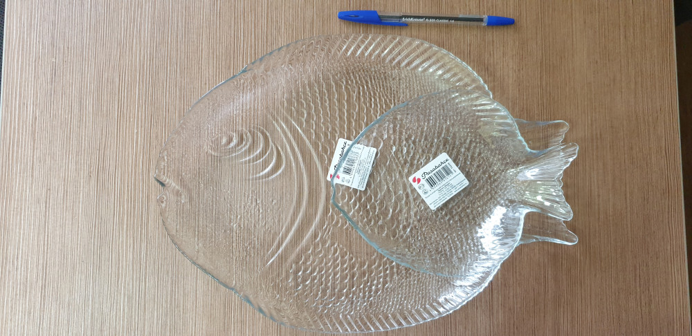 Большое блюдо, даже и не ожидала, что на столько. Брала ещё маленькую тарелочку рыбку. Фото в сравнении.