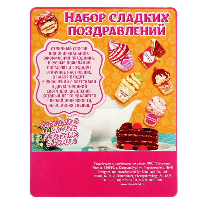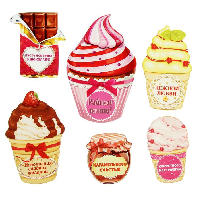 Набор пожеланий «Сладкие поздравления» – это отличная идея для создания незабываемого праздника. Он подходит для украшения интерьера, рабочего стола, подарков, открыток, цветов и всего-всего, на что разгуляется фантазия!