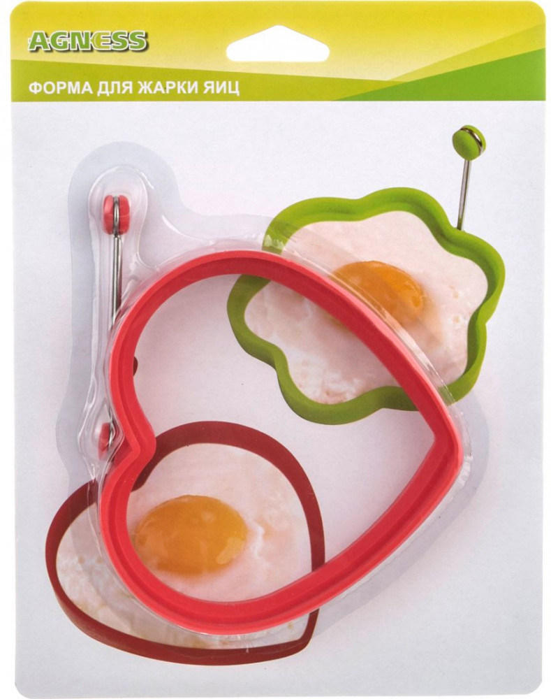 В данный момент этот товар отсутствует в продаже. Возможно, у нас найдется аналогичный или похожий товар здесь. С помощью формочки Agness Вы легко и быстро приготовите яйца. Формочка изготовлена из 100% силикона, не выделяет при нагреве вредных веществ, легко моется и удобна в хранении. Можно использовать в посудомоечной машине.