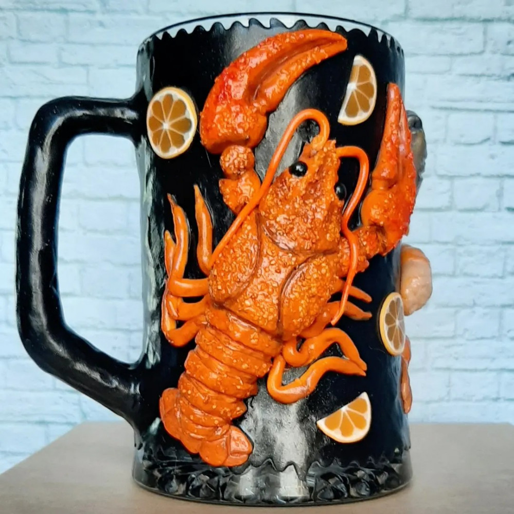 Купила эту кружку на пробу, для декора из полимерной глины, и на подарок брату. Кружка оказалась очень хорошей, большой, устойчивой, толстостенной, с толстым дном.