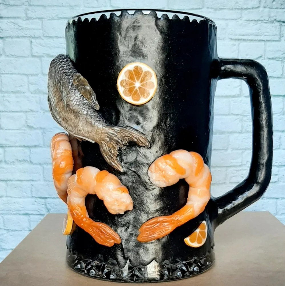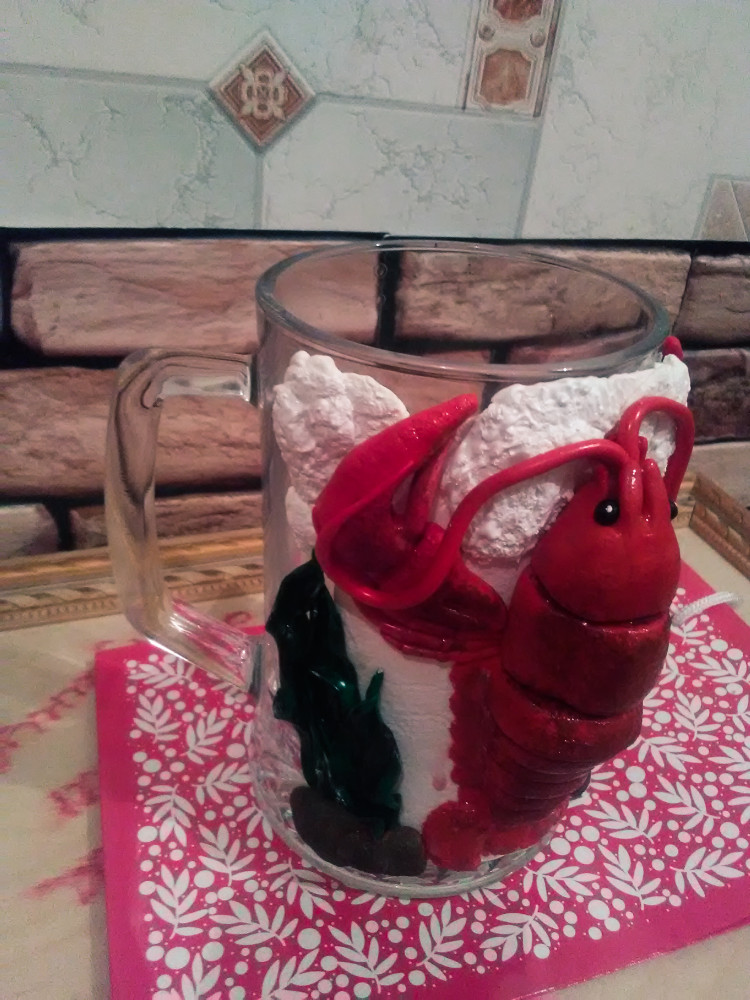 кружка большая, качественная, толстое стекло и толстое дно. На фото стеклянная кружка задекорирована полимерной глиной.