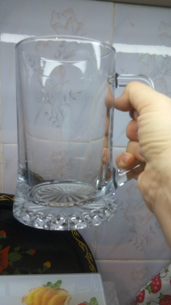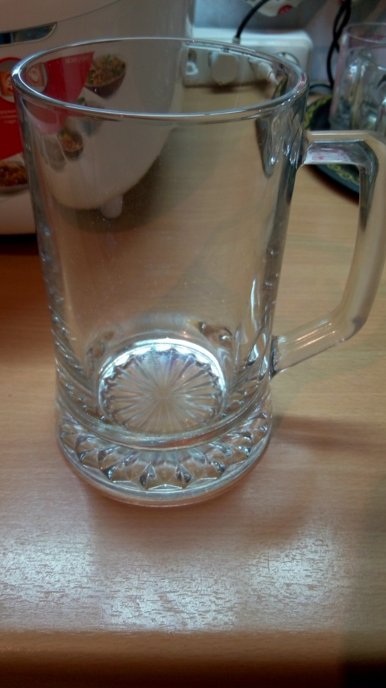 Кружка из плотного стекла, тяжёлая. Ручка удобная. Муж в восторге.