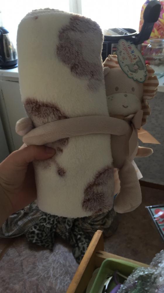 Плед очень мягкий и приятный к телу, ребёнок в восторге, а игрушка, вообще, замечательная. Спасибо!!!!!!