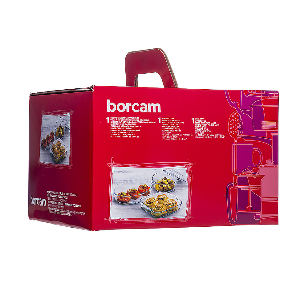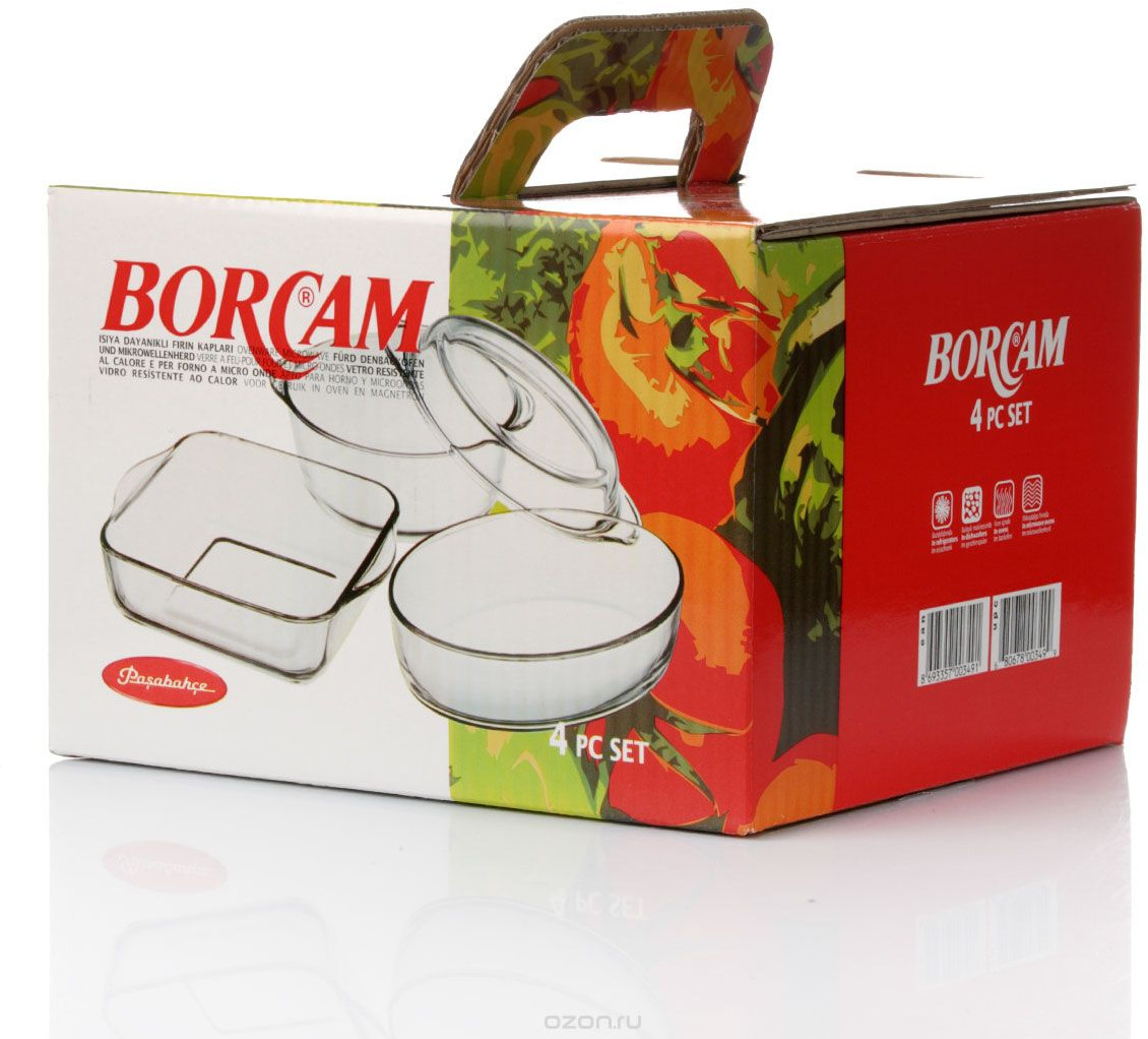 BORCAM - это один из брендов торговой марки PASABAHCE, под которым выпускается посуда для СВЧ и духовых шкафов. BORCAM - это качественная посуда из жаропрочного боросиликатного стекла, устойчивая к механическим повреждениям, высокой температуре и ее перепадам.
