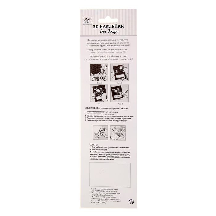 С обратной стороны каждой наклейки клейкая основа, поэтому вы без труда можете наносить их на бумагу, пластик, картон или же стекло. Снимите защитный слой и приклейте, слегка нажав на декор.