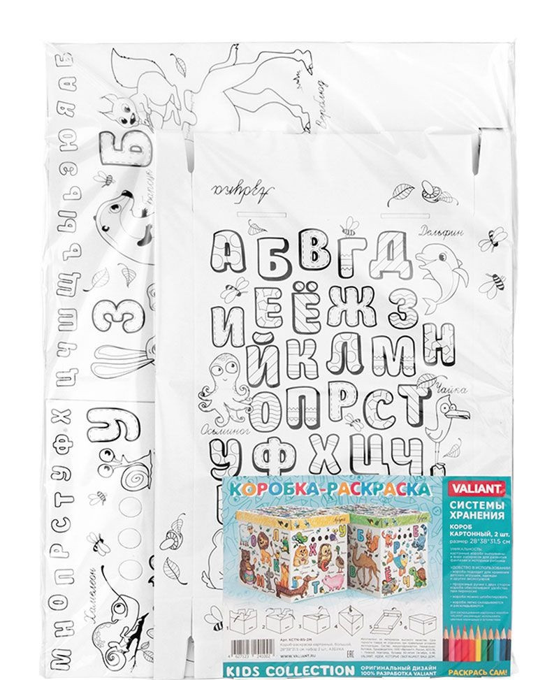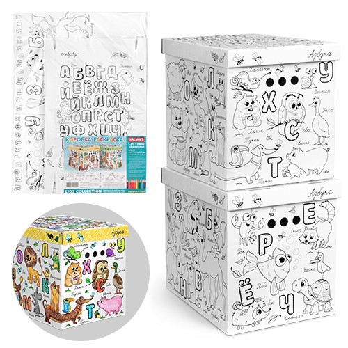 Valiant Короб-раскраска для хранения «Азбука» (2 шт), большойВ данный момент этот товар отсутствует в продаже. Возможно, у нас найдется аналогичный или похожий товар здесь. Серия: Kids. Короба, кофры Легкие и прочные коробки из картона, оформлены черно-белыми изображениями, которые ребенок может самостоятельно раскрасить. Благодаря прорезным ручкам с двух сторон, коробки удобно поднимать и переносить. Изделия оснащены крышками; на упаковке имеется инструкция по сборке. |