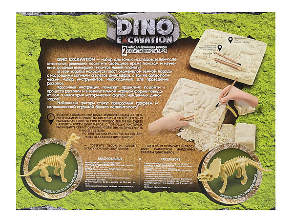 💳 Оплатить за товар можно при получении 🇰🇿 Есть бесплатная доставка по Казахстану от 1 дня 🎁 Копите бонусы с каждой покупки Серия: Dino Excavation Наборы из серии «Dino Excavation» созданы специально для детей, интересующихся палеонтологией. В комплекте есть окаменелая земная порода, которая будет использоваться для раскопок. После завершения работы трофеем ребенка станут скелеты двух динозавров. Инструкция подробно описывает все шаги раскопок, а также рассказывает об исторических фактах и поисках останков этих удивительных животных. |