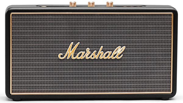 И конечно же традиционное исполнение в стиле олдскульных гитарных усилителей: аналоговые переключатели и ручки регулировок золотого цвета, металлическая решетка на динамиках с легендарным логотипом Marshall на ней и идеальные формы колонки Stockwell. |