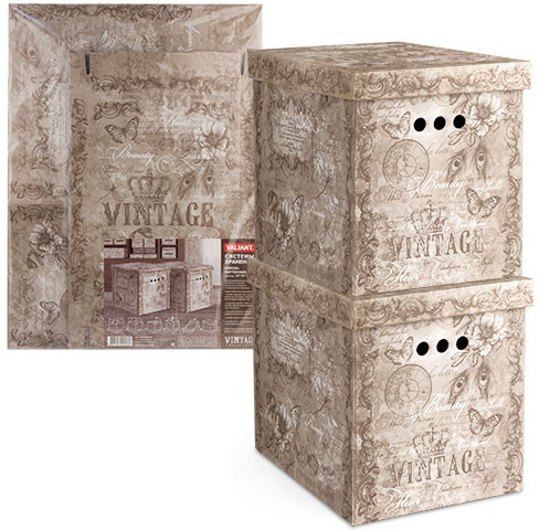 В данный момент этот товар отсутствует в продаже. Возможно, у нас найдется аналогичный или похожий товар здесь. Серия: Vintage Набор из двух оригинальных картонных коробов для хранения. Изделия легко и быстро складываются. Оснащены крышками и тремя отверстиями для комфортного выдвигания.