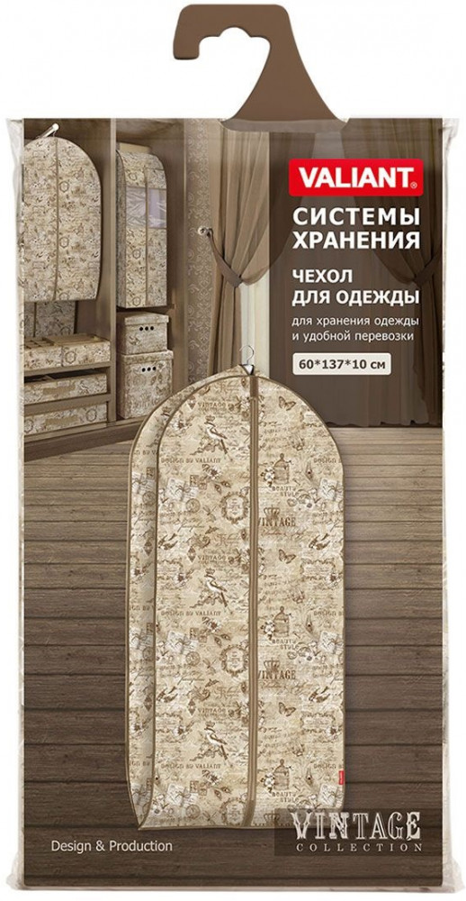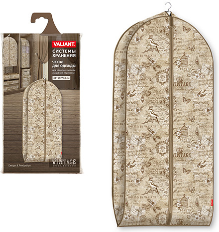 В данный момент этот товар отсутствует в продаже. Возможно, у нас найдется аналогичный или похожий товар здесь. Серия: Vintage Чехол для одежды Valiant изготовлен из высококачественного нетканого материала, который обеспечивает естественную вентиляцию, позволяя воздуху проникать внутрь, не пропуская пыль. Очень удобен в использовании. Наличие боковой вставки увеличивает объем чехла, что позволяет хранить крупные объемные вещи.