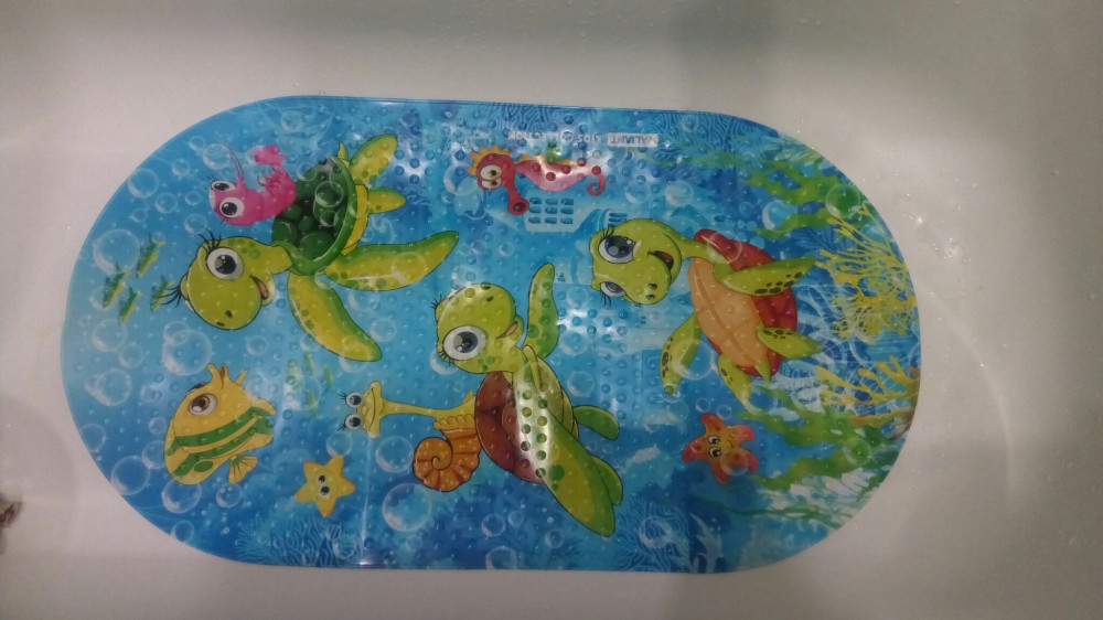 Коврик яркий и красивый. Очень понравился деткам. Но, присоски слабые, коврик плохо крепится к дну ванны, скользит и ездит. Стоять на нем не безопасно!