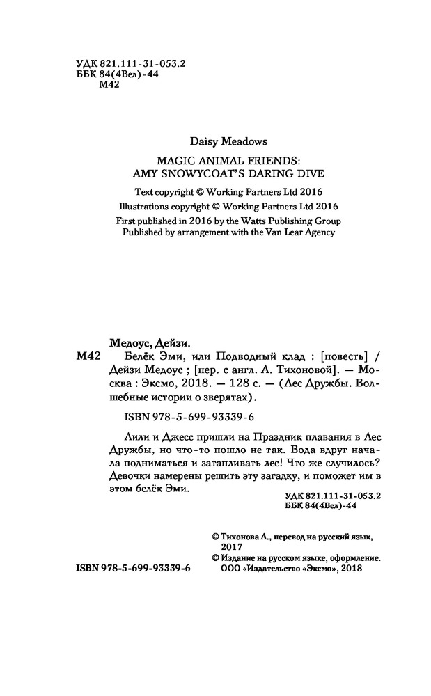 💳 Оплатить за товар можно при получении 🇰🇿 Есть бесплатная доставка по Казахстану от 1 дня 🎁 Копите бонусы с каждой покупки Серия: Лес Дружбы. Волшебные истории о зверятах ?Лили и Джесс пришли на Праздник плавания в Лес Дружбы, но что-то пошло не так. Вода вдруг начала подниматься и затапливать лес! Что же случилось? Девочки намерены решить эту загадку, и поможет им в этом белёк Эми. |